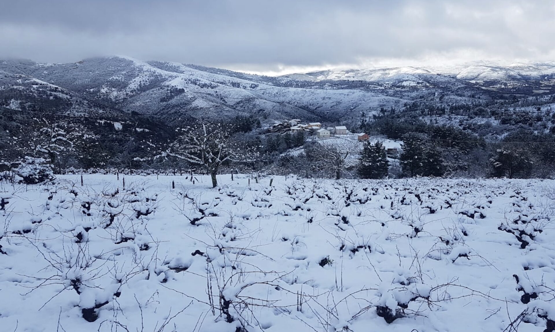 Paisaxe nevada no Seixo, xaneiro de 2023. No centro, O Lombeiro