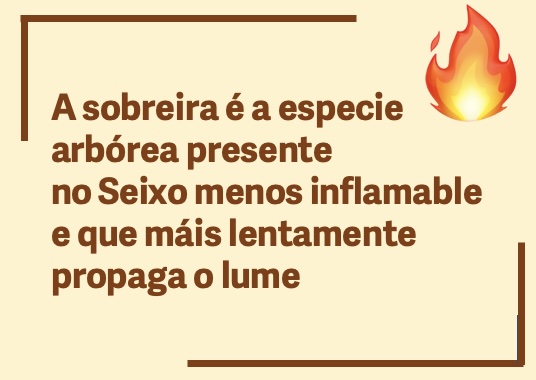 A sobreira é a especie menos inflamable inflamable e que máis lentamente propaga do lume. A súa presenza en superficies arborizadas dispersas e árbores illadas contribuíu á protección fronte ao incendio. O castiñeiro ten unha inflamabilidade baixa-media e unha facilidade de propagación media. Os grupos de castiñeiros formando soutos nos hábitats máis húmidos que estaban rozados foron protectores.