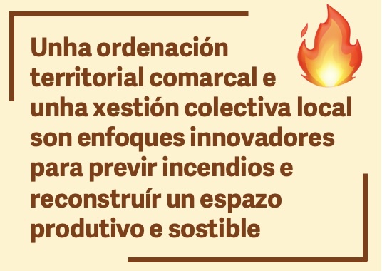 A ordenación do territorio a nivel comarcal, ou polo menos unha planificación ordenada dos tipos de vexetación e usos do solo, sería unha opción moi oportuna para a protección fronte a incendios extremos do medio rural en Galicia.
