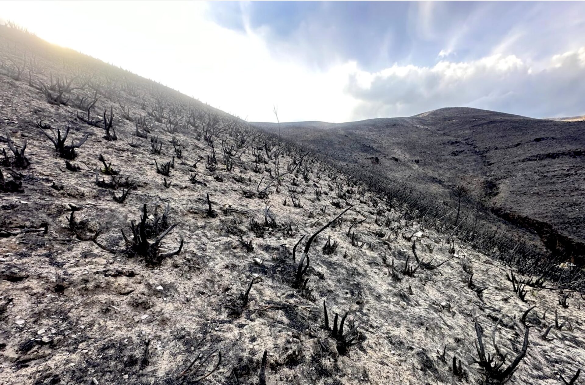 Matogueira de uz dous meses despois do incendio do 16 agosto de 2025 no Monte Veciñal en Man Común de San Vicente de Leira (Vilamartín de Valdeorras, Ourense)